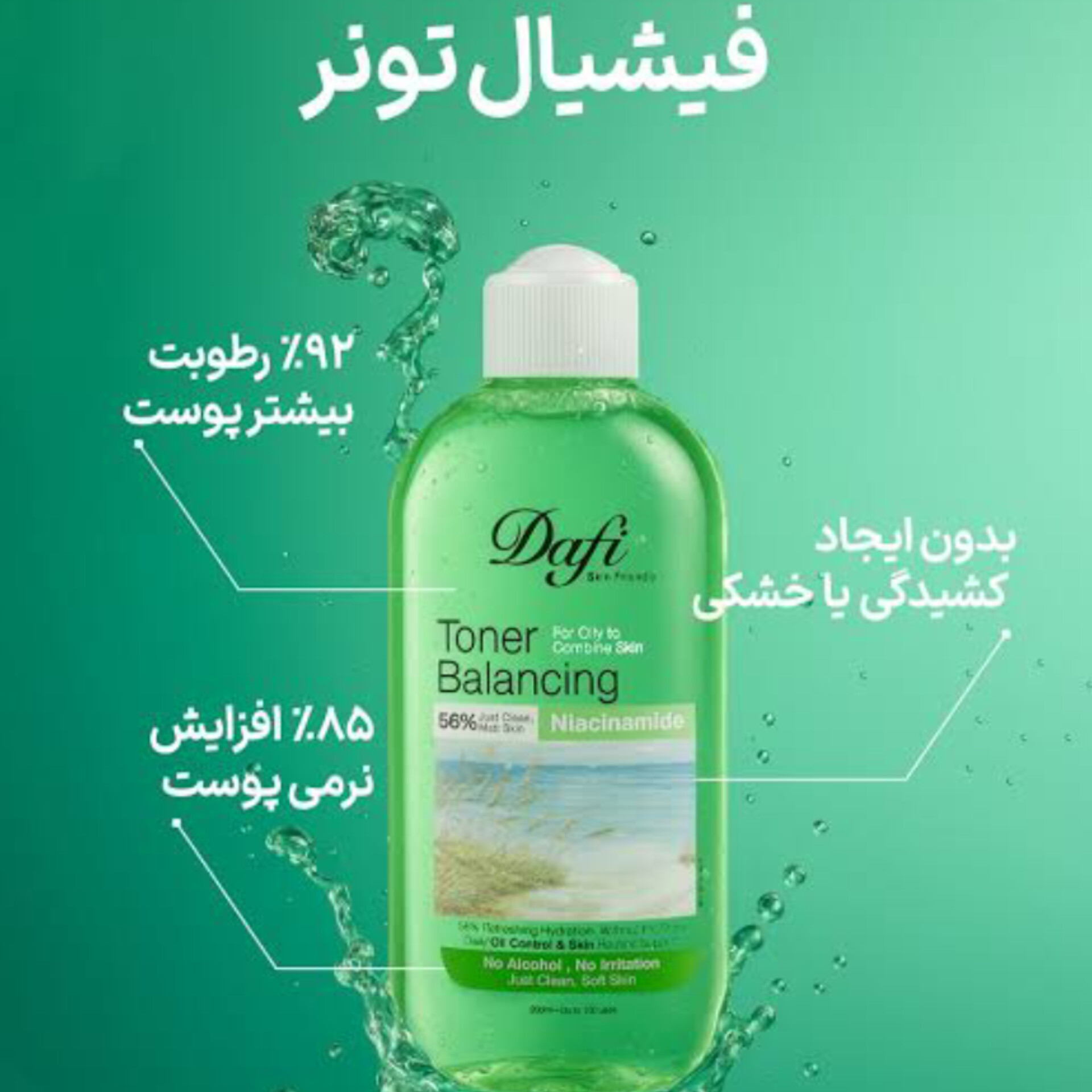 تونر Dafi Skin Friendly Toner Balancing Niacinamide For Oily & Combination Skin یکی از محصولات تخصصی و پرفروش برند ایرانی Dafi است که به طور ویژه برای پوستهای چرب و مختلط طراحی شده است. این تونر با فرمولاسیون متعادلکننده و حاوی نیاسینامید، به کنترل چربی پوست، کاهش براقیت و بهبود ظاهر منافذ کمک میکند و در عین حال باعث خشکی یا تحریک پوست نمیشود.